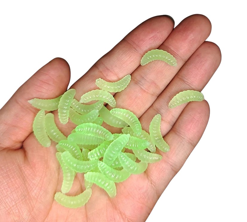 The artificial bait is a great substitute for live bait. The scent attracts fish from greater distances. The worm is 2 cm long. The bait can be used alone or as a supplement.