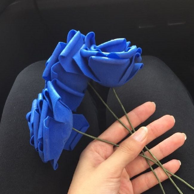 A bouquet of artificial roses is perfect as a decoration for both dining and work tables.