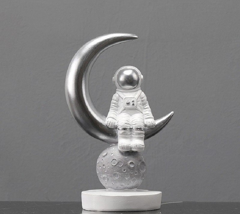 Astronaut figurine and moon