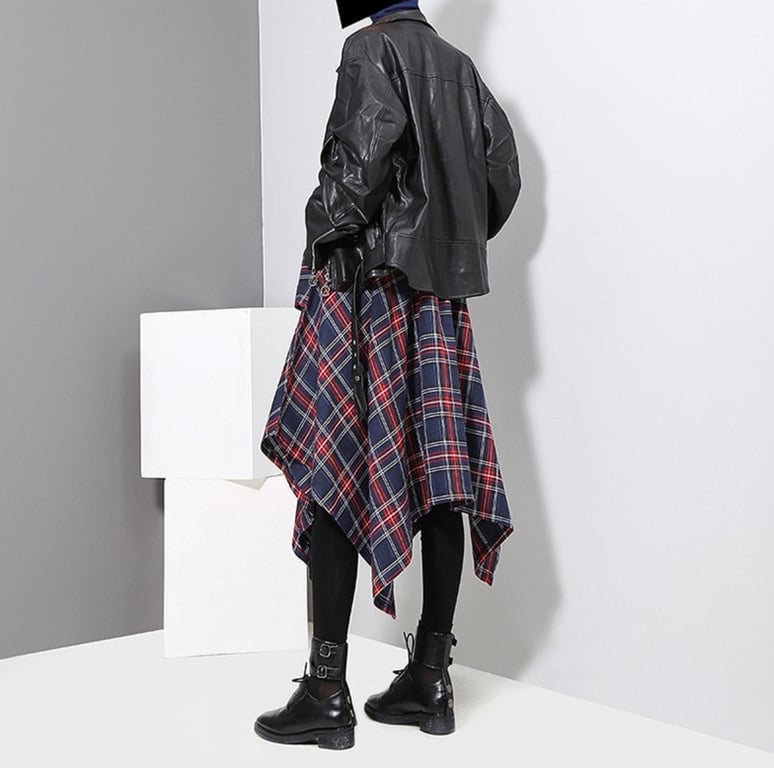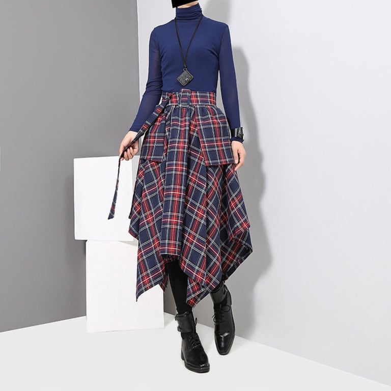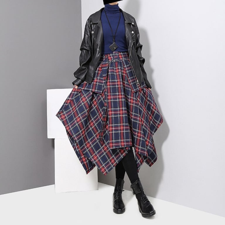 Women's Asymmetrical Checkered Skirt