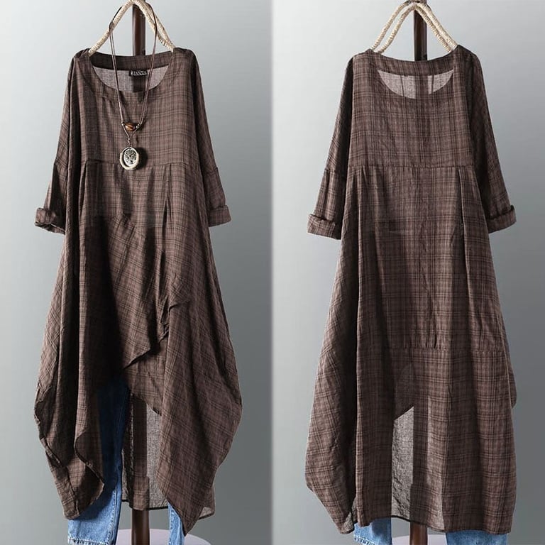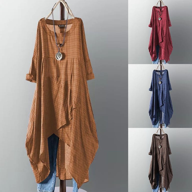 Women's tunic-style dress with long sleeves.