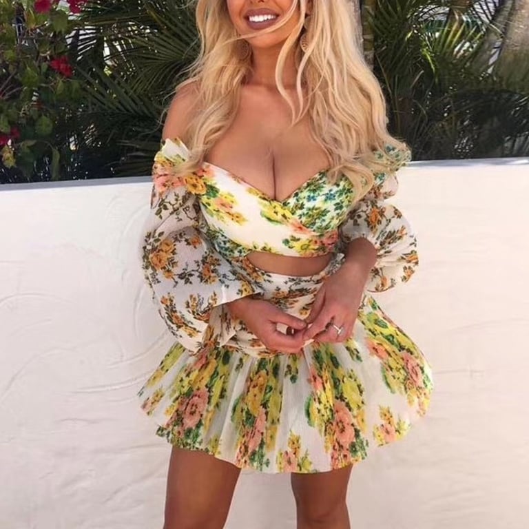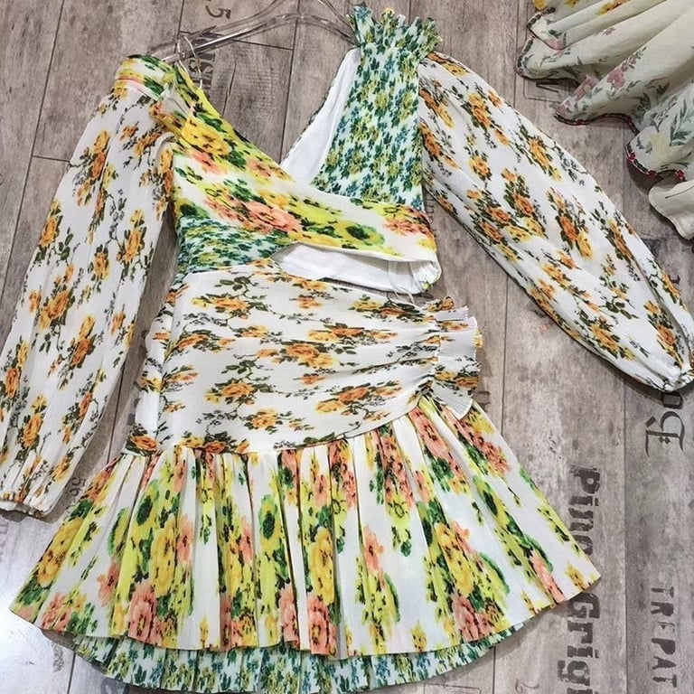 Women's mini dress with ruffles! Unusual asymmetrical cut.