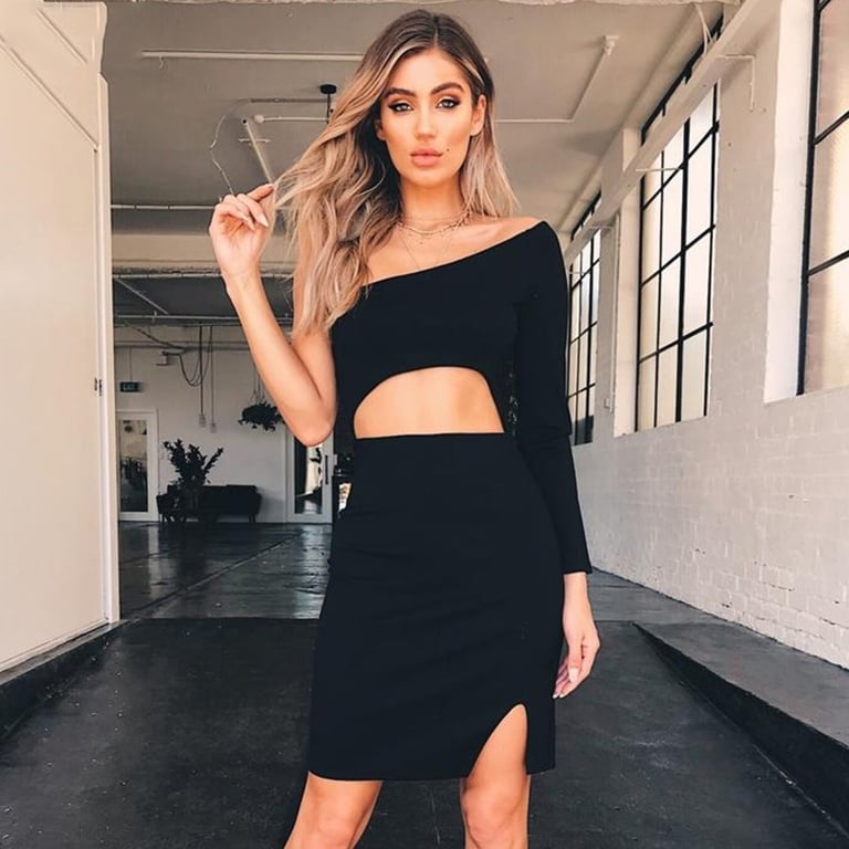 Sexy cut-out. Slit and alluring mini length.