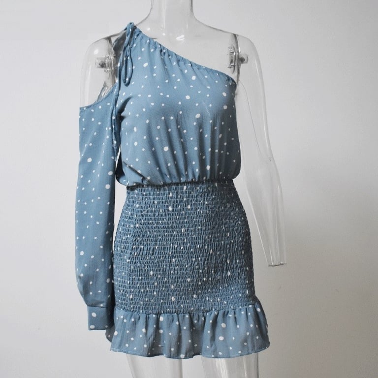 Asymmetrical Mini Dress with Polka Dots