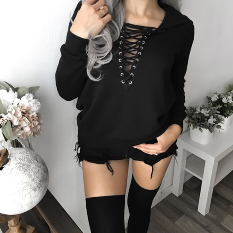 Attractive hoodie with a tie at the neckline. It is comfortable with a practical cut.