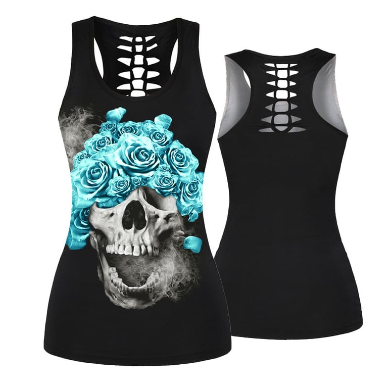 Attractive women's tank top with an interesting print. The overall impression is enhanced by extravagant slits on the back. Free shipping!
