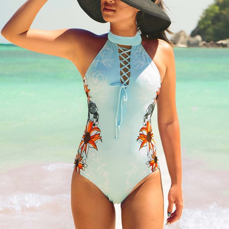 Stylish swimwear with an interesting pattern and a strap around the neck, with which you'll shine anywhere! Even one-piece swimsuits can make a big impression, give them a try!