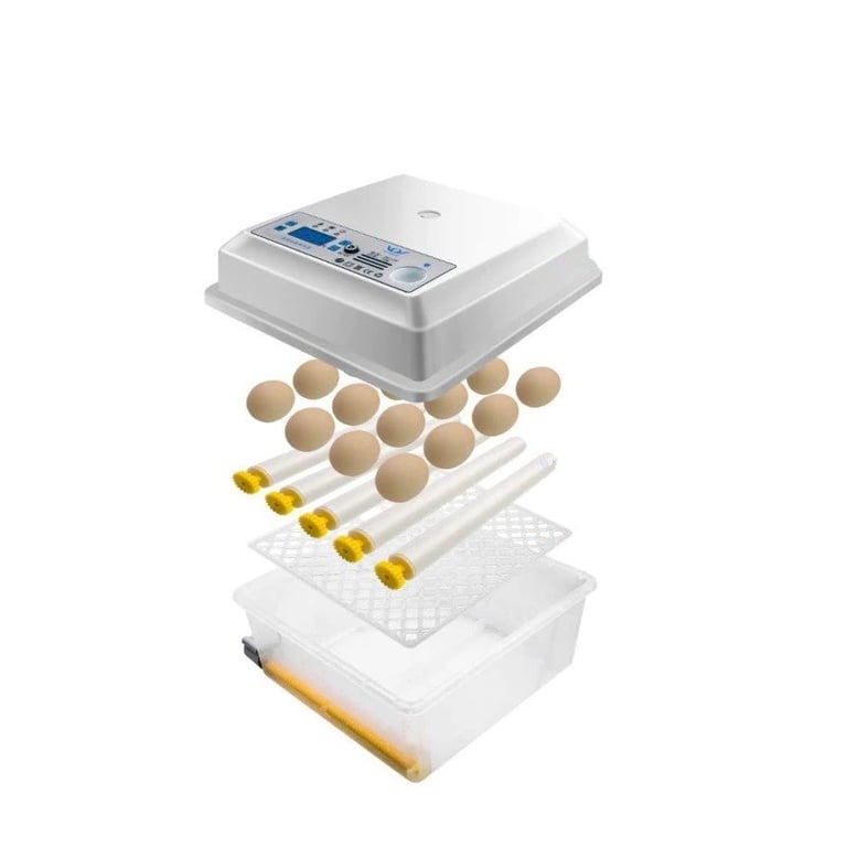 The incubator holds 16 eggs and is adjustable for different types of birds.