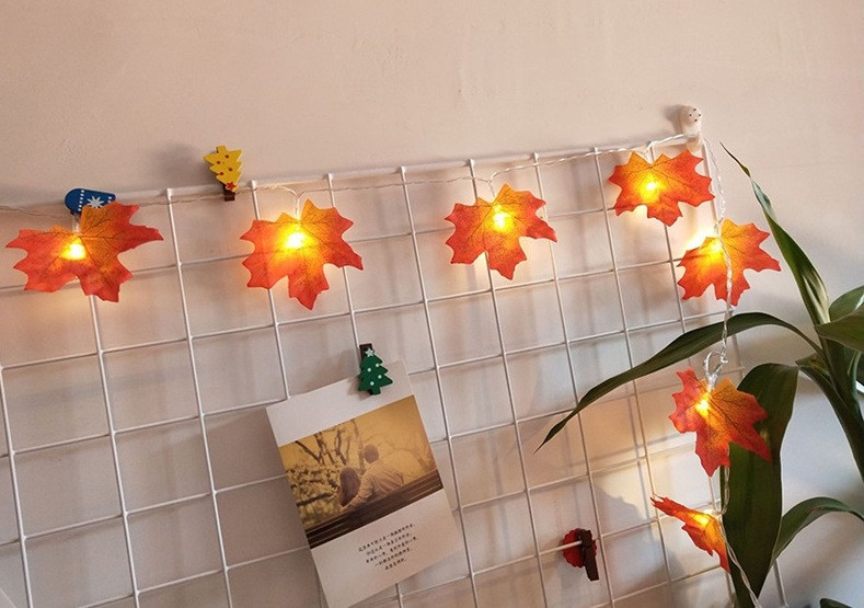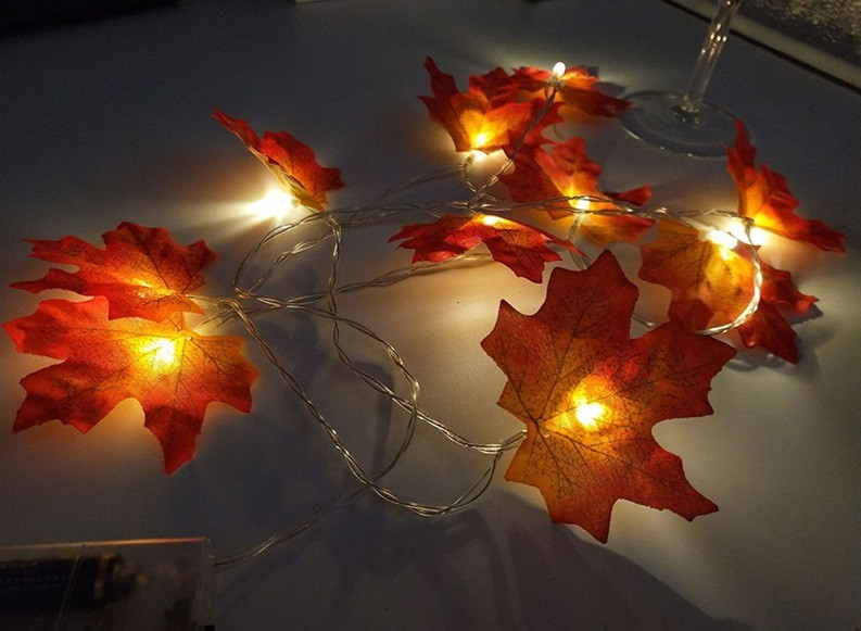 Autumn decoration – LED string lights with leaves 3m