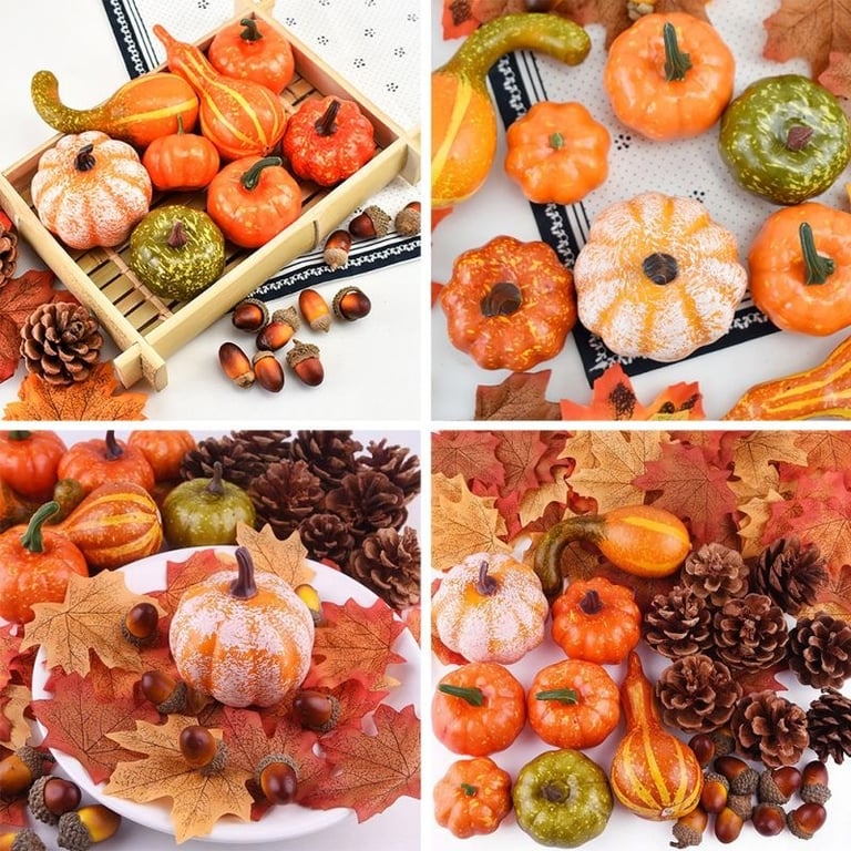 Contents of the package: 6x pumpkins, 2x gourds, 30x maple leaves, 10x oak leaves, 2x pine cones