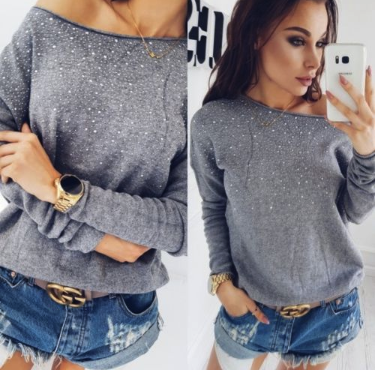Autumn desirable knitted women's sweater with a stand-up collar.