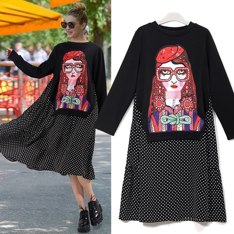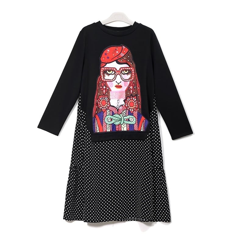 Women's tunic-style dress. Long sleeves and a round neckline.