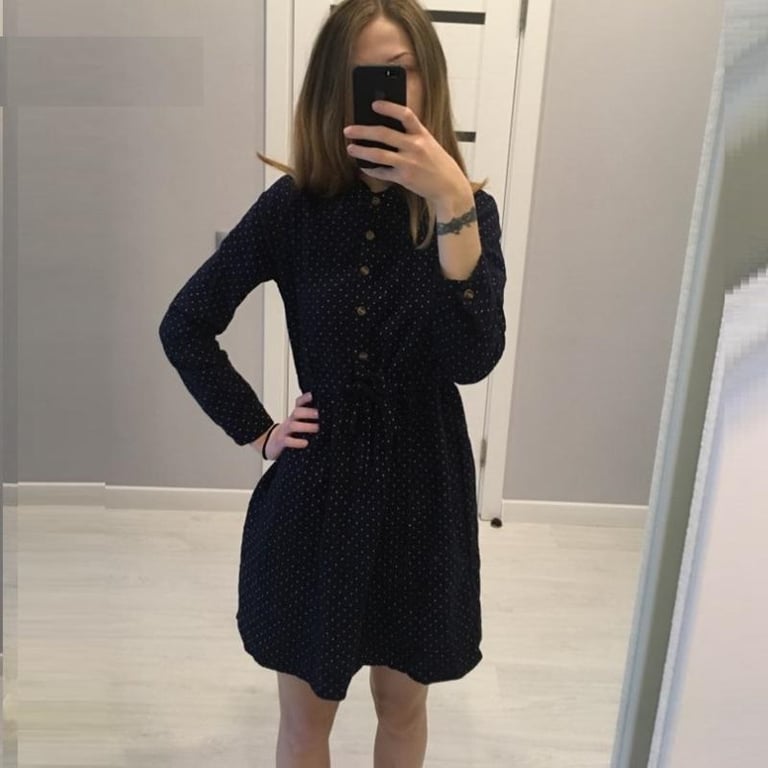 Cute polka dot dress with long sleeves and a shirt-style collar.