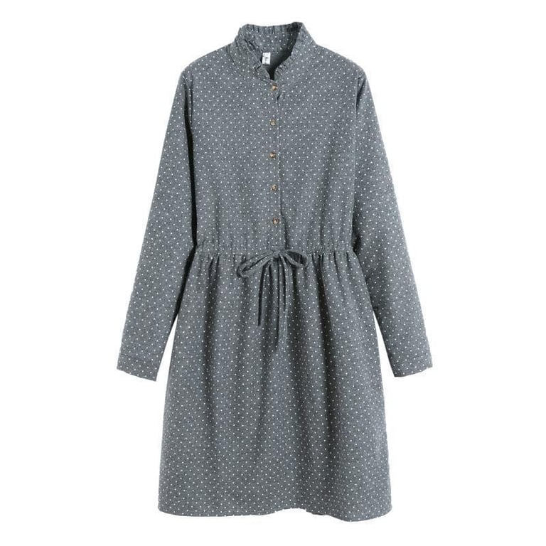 Cute polka dot dress with long sleeves and a shirt-style collar.