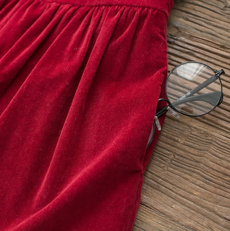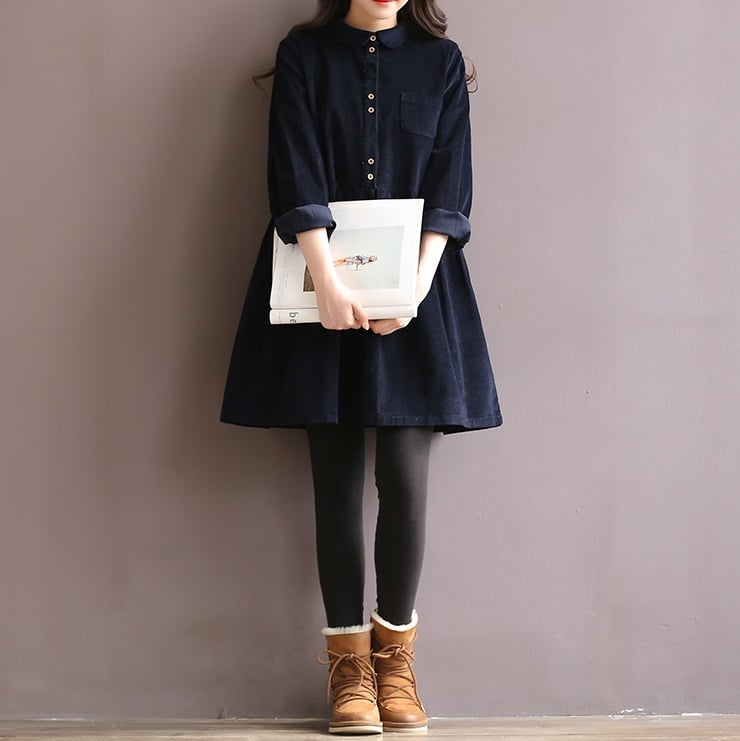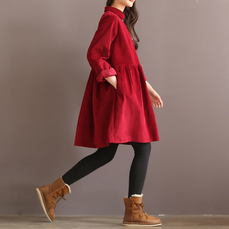Cute autumn dress with a corduroy look.