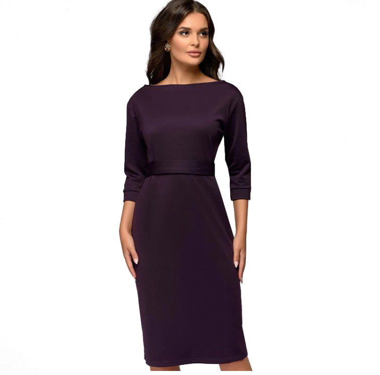 Autumn elegant dress with a bow on the back Ichloix – purple