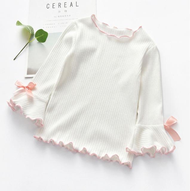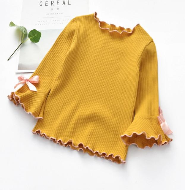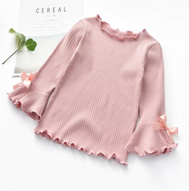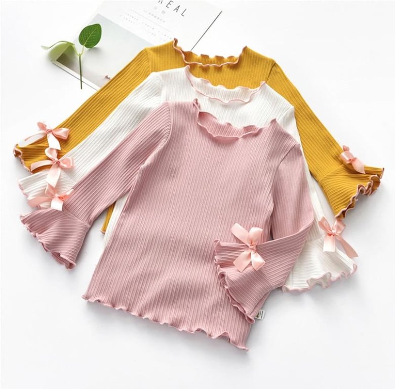 Beautiful girls' sweater with bows on the sleeves. Available in three lovely colours.