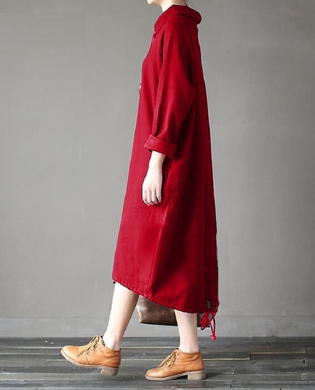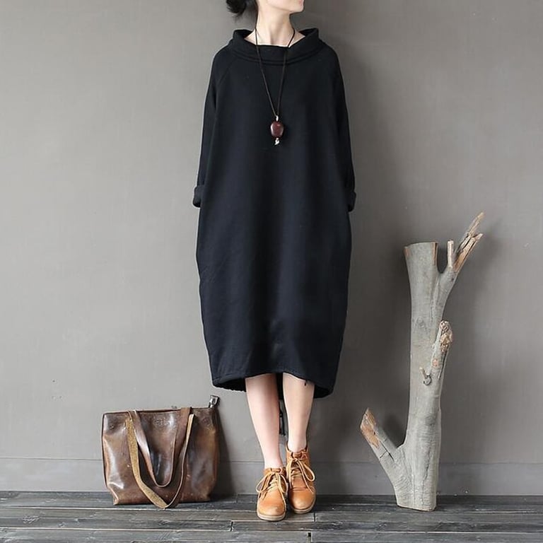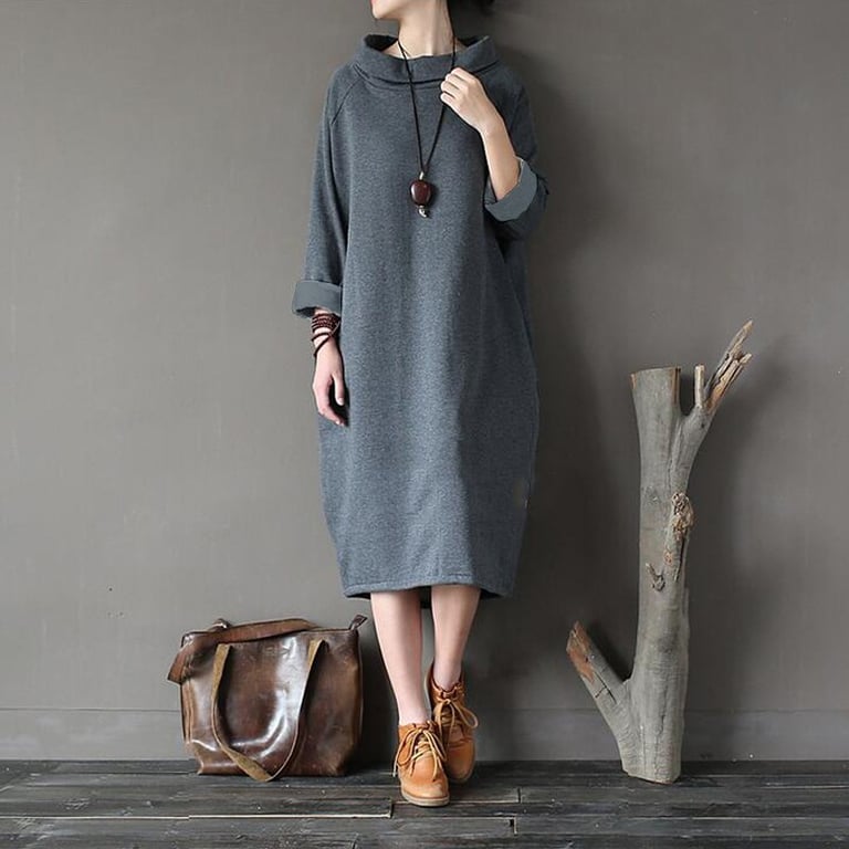 Comfortable women's autumn dress in a loose fit with long sleeves.