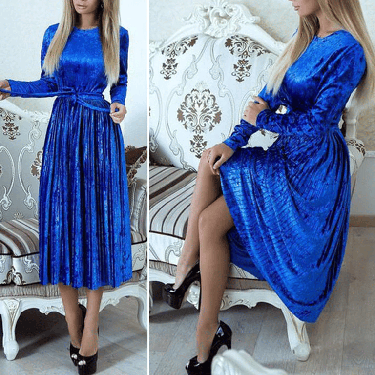 Autumn longer velvet dress Cilen – blue