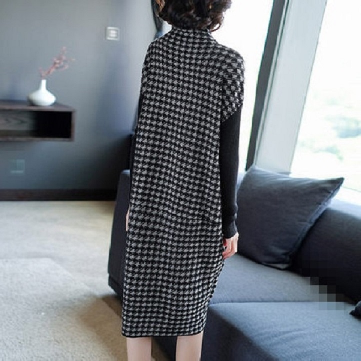 Elegant women's autumn dress with long sleeves and a roll neck.