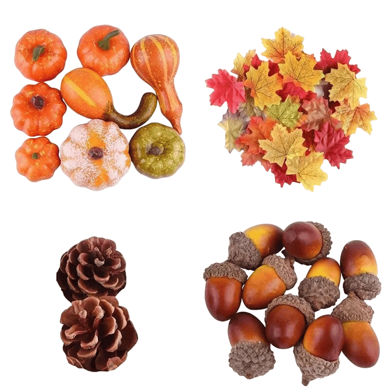 Contents of the package: 8x pumpkin, 30x leaf, 2x cone, 10x acorn