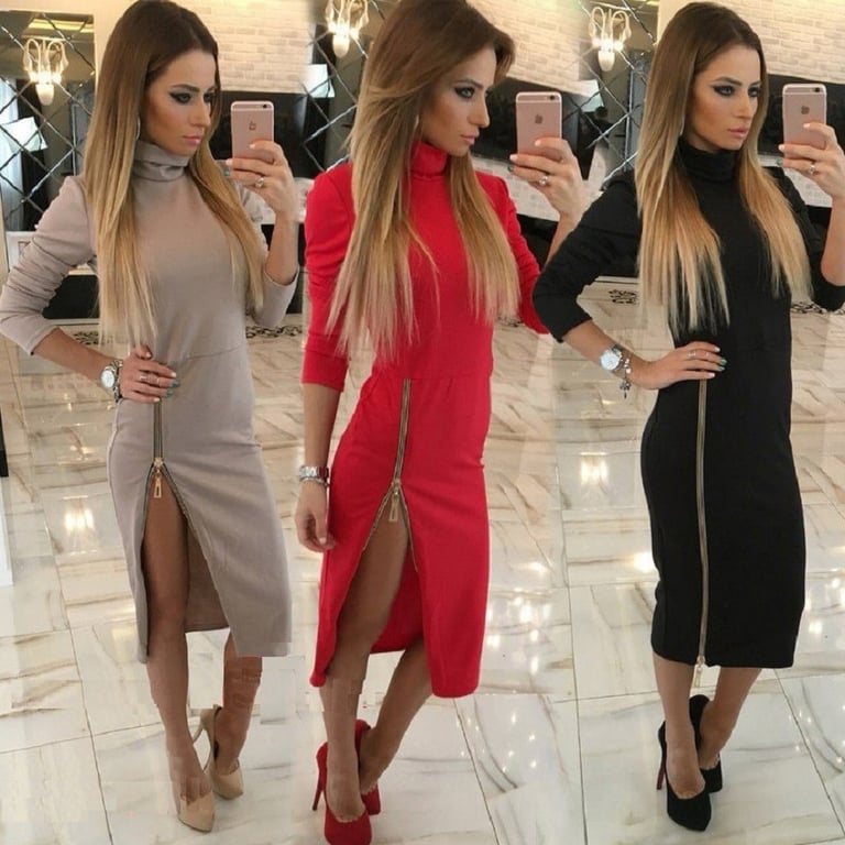 Autumn roll-neck midi dress