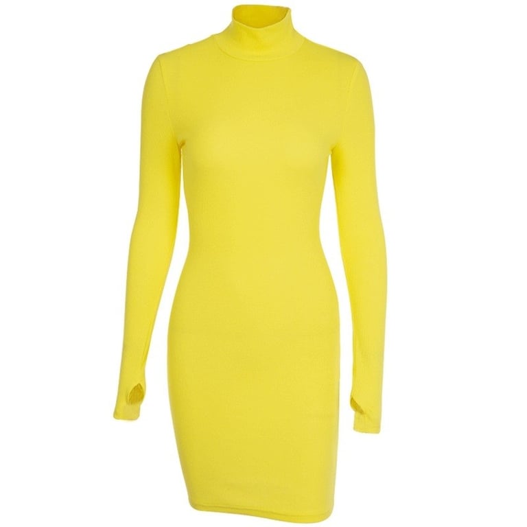 Comfortable autumn stretch mini dress with a roll neck and long sleeves.