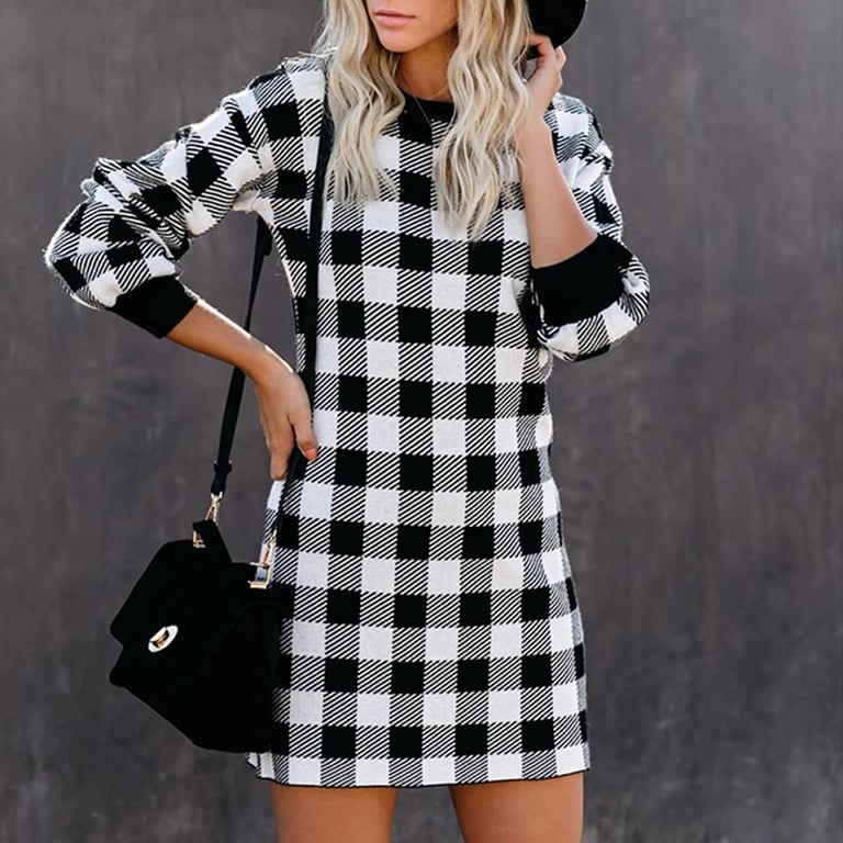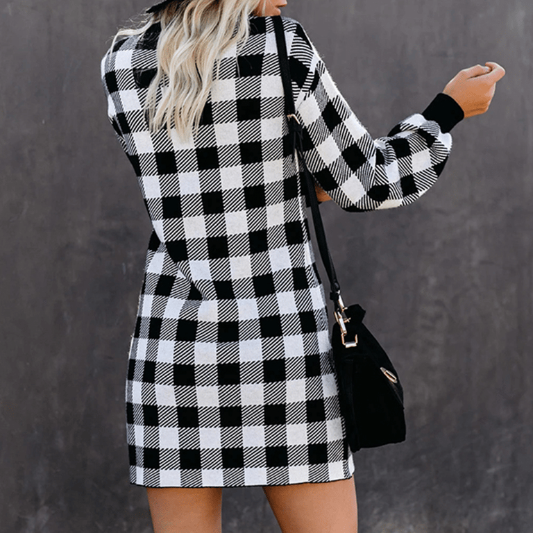 • Tags: dress, short dress, mini dress, women's dress, autumn dress, long sleeve dress, checked dress