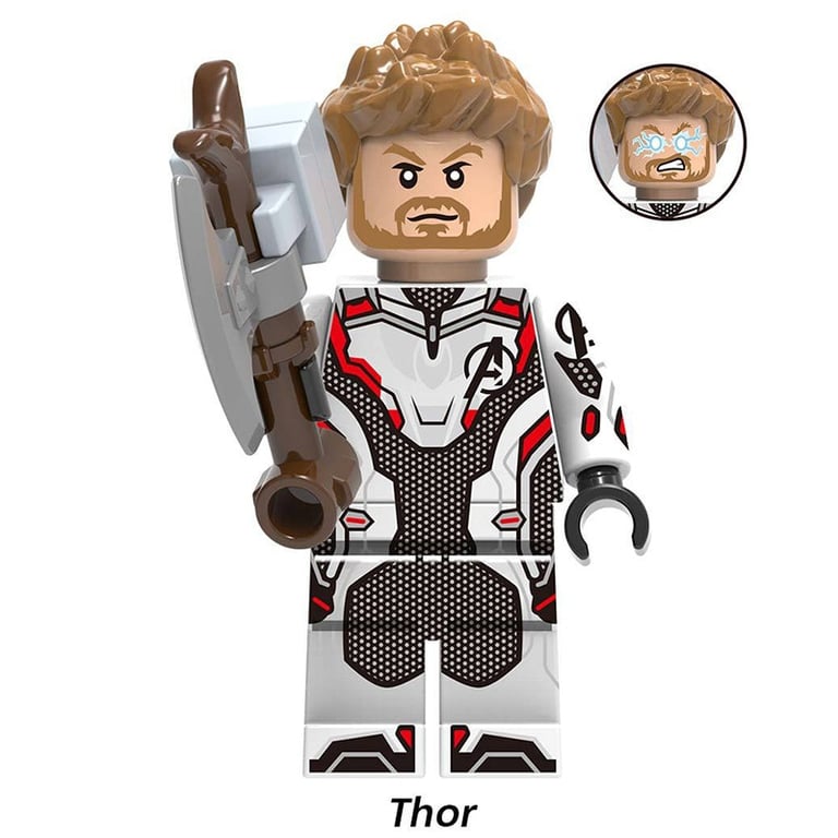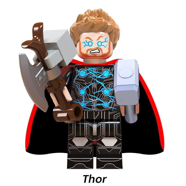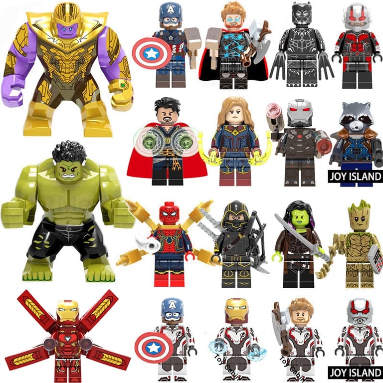 Children's action figures featuring the well-known superheroes from Avengers. The figures are compatible with LEGO building sets.