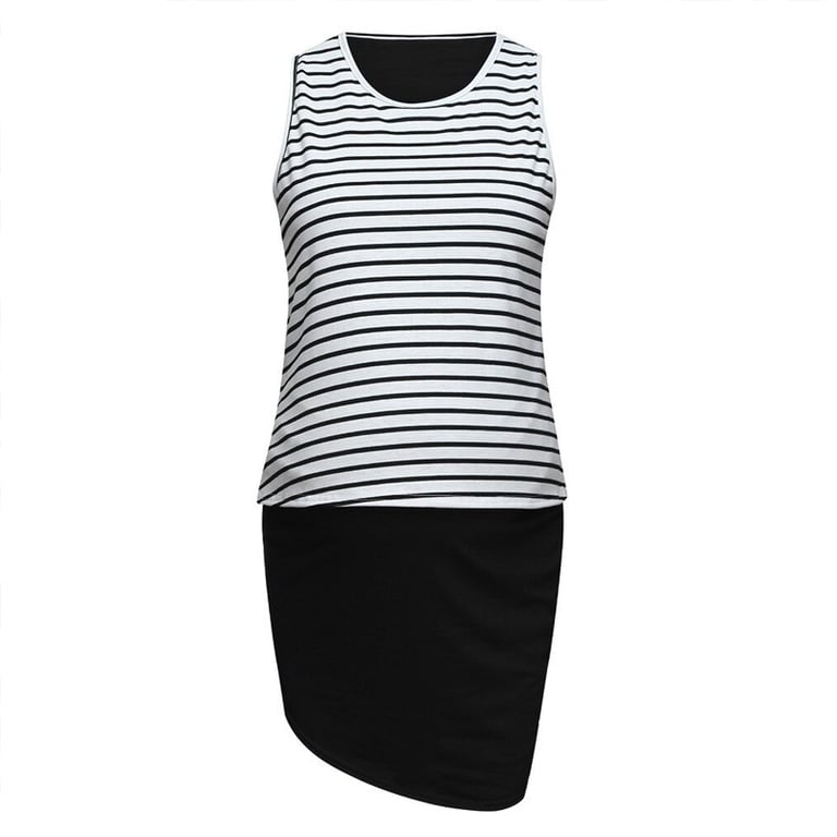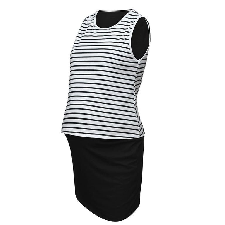 Stylish maternity dress that evokes the feeling of wearing a skirt and a t-shirt. You can accessorise the outfit with a stylish knot on the faux t-shirt.