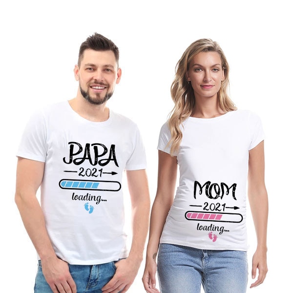 Parenting t-shirt with a baby loading print and the words Mom or Dad (2 variants). This t-shirt will charm everyone, including you. It is made from high-quality cotton, ensuring greater durability and strength of the material.