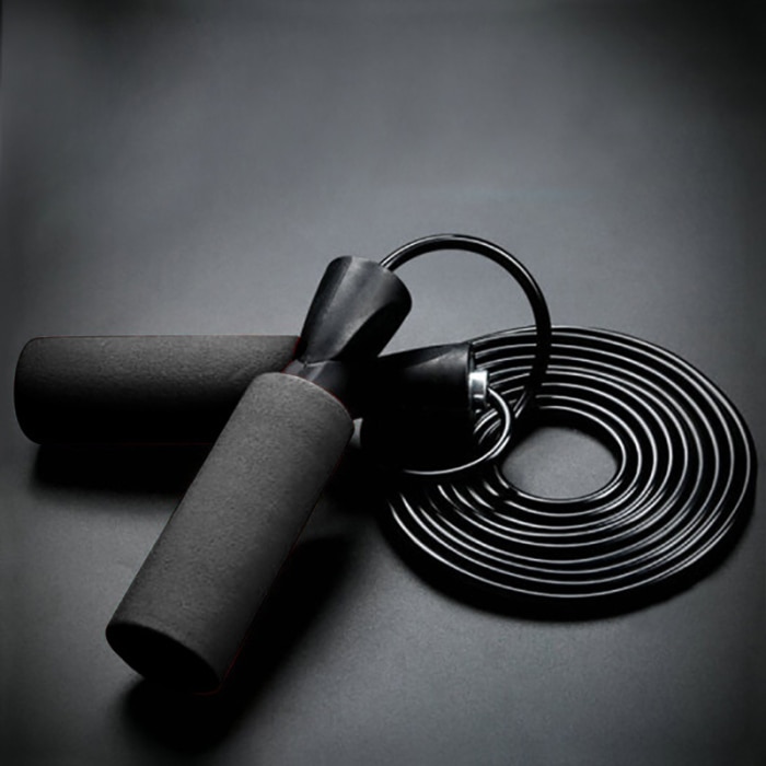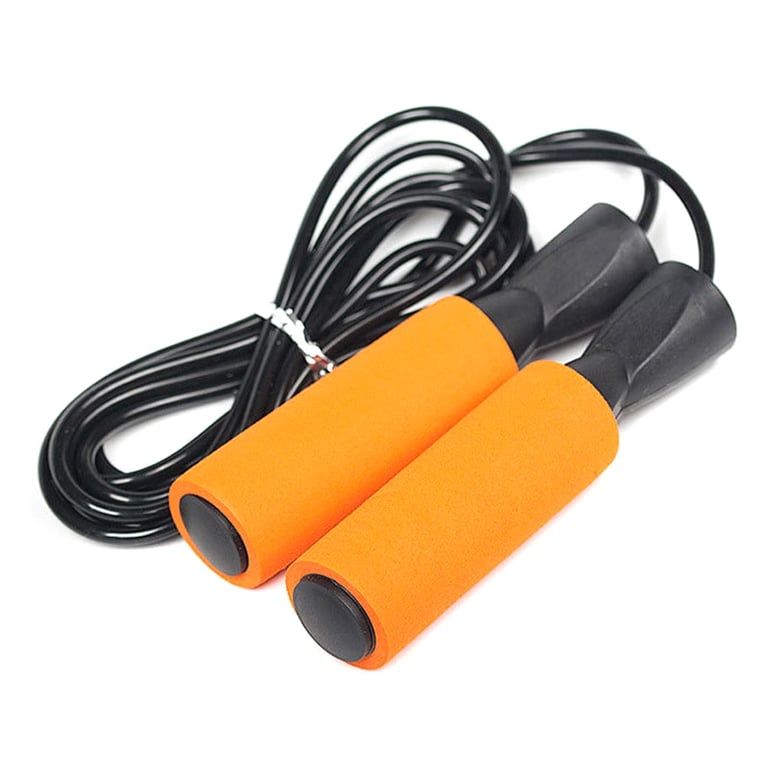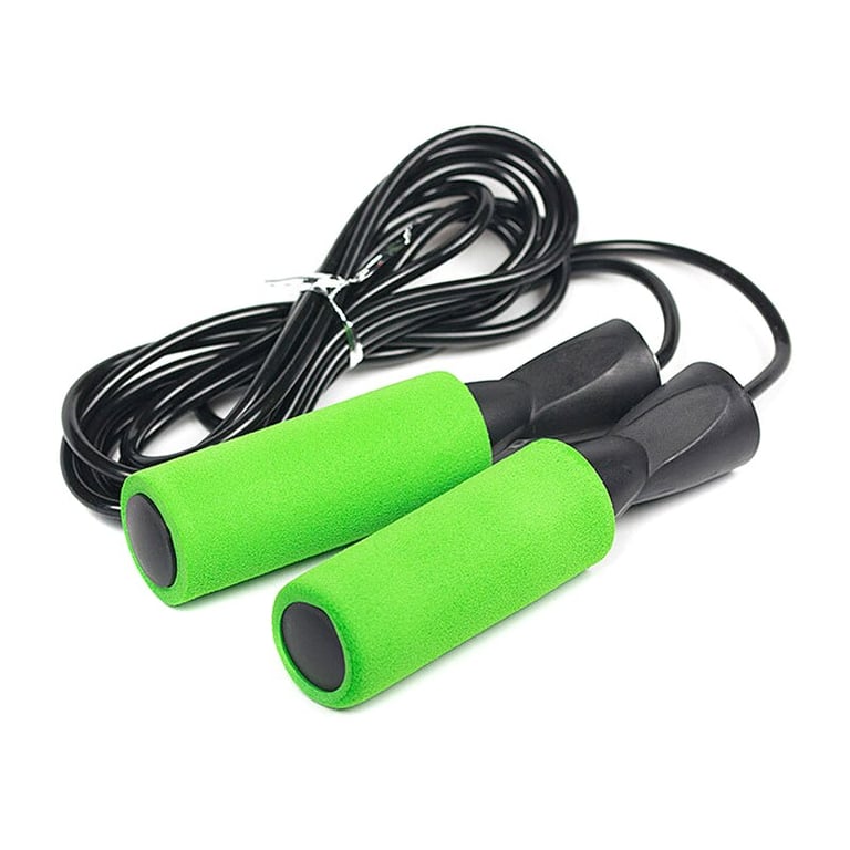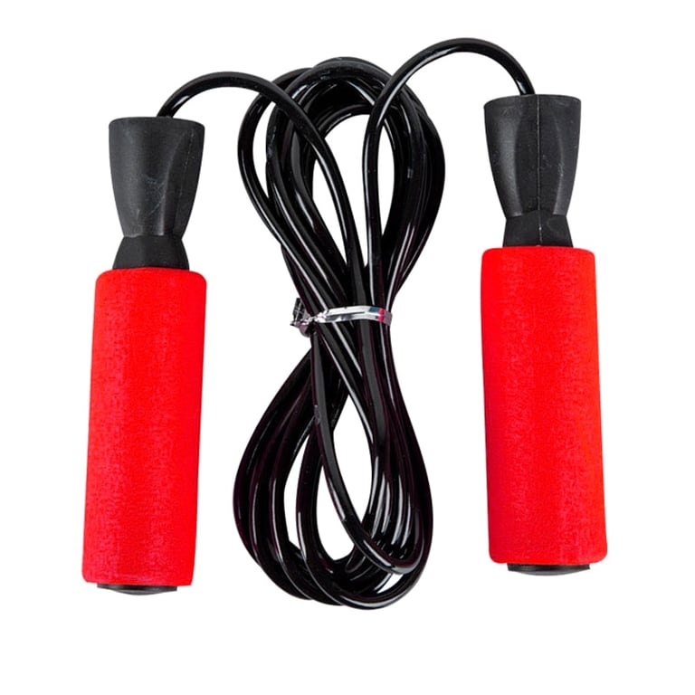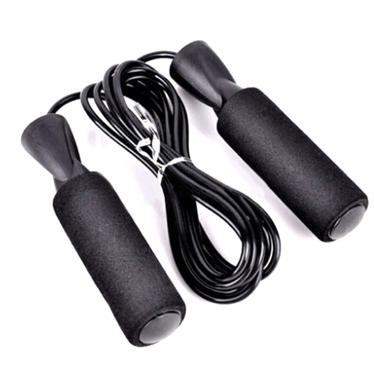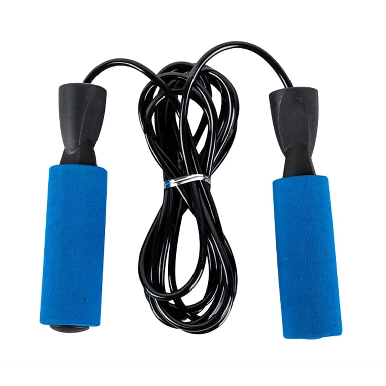 The jump rope features foam handles, ball bearings, and versatile cable twisting.