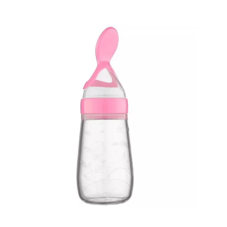 Are you looking for an easy and convenient way to feed your baby? Look no further than the feeding bottle. The bottle is also equipped with a spoon instead of a suction tip, making it easier for you to feed your child. This bottle features a practical measuring cup on the side, so you can easily measure the ideal amount of milk or formula for your little one.