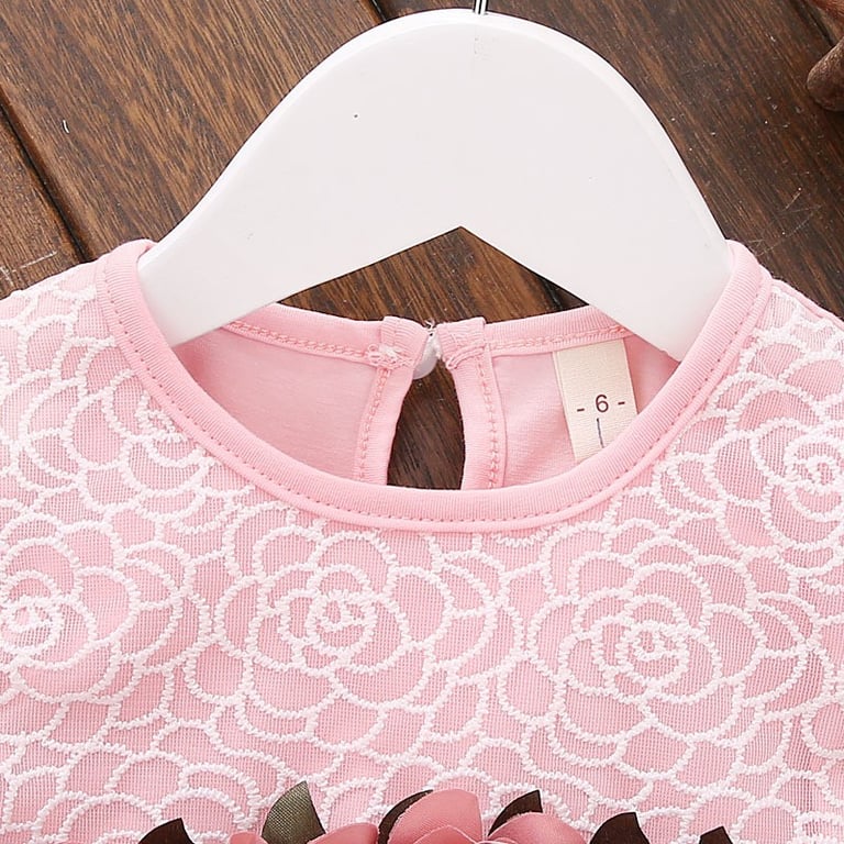 Girls' dress with a chiffon skirt, adorned with flowers and a bow.