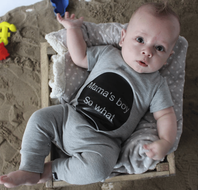 Baby grey bodysuit with print and text