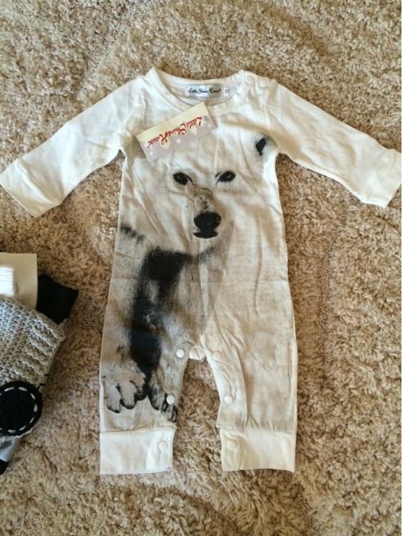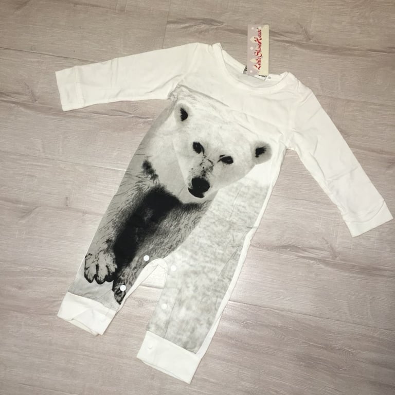 Beautiful baby overall with a 3D print of a polar bear that looks realistic will really suit your child.