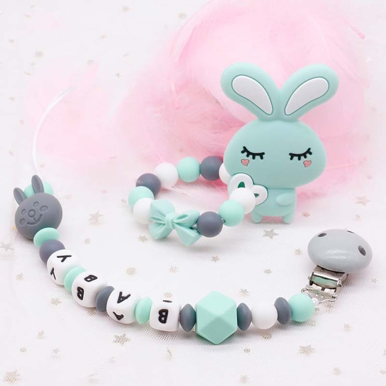 Stylish baby set that can be used to attach a pacifier as well as a toy.
