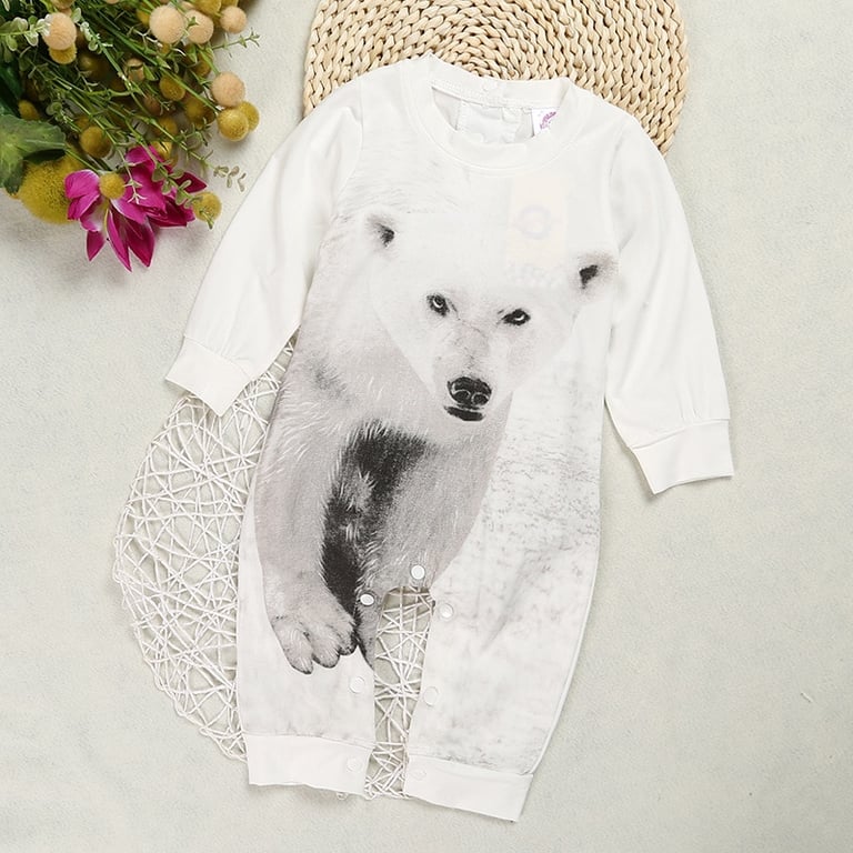 This beautiful baby overall with a 3D polar bear print that looks realistic will really suit your child.