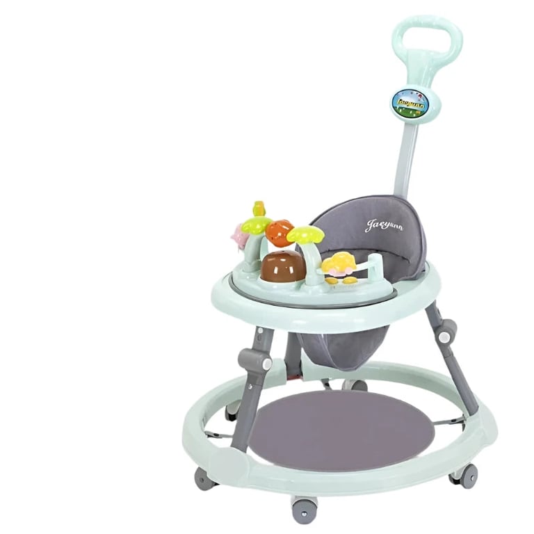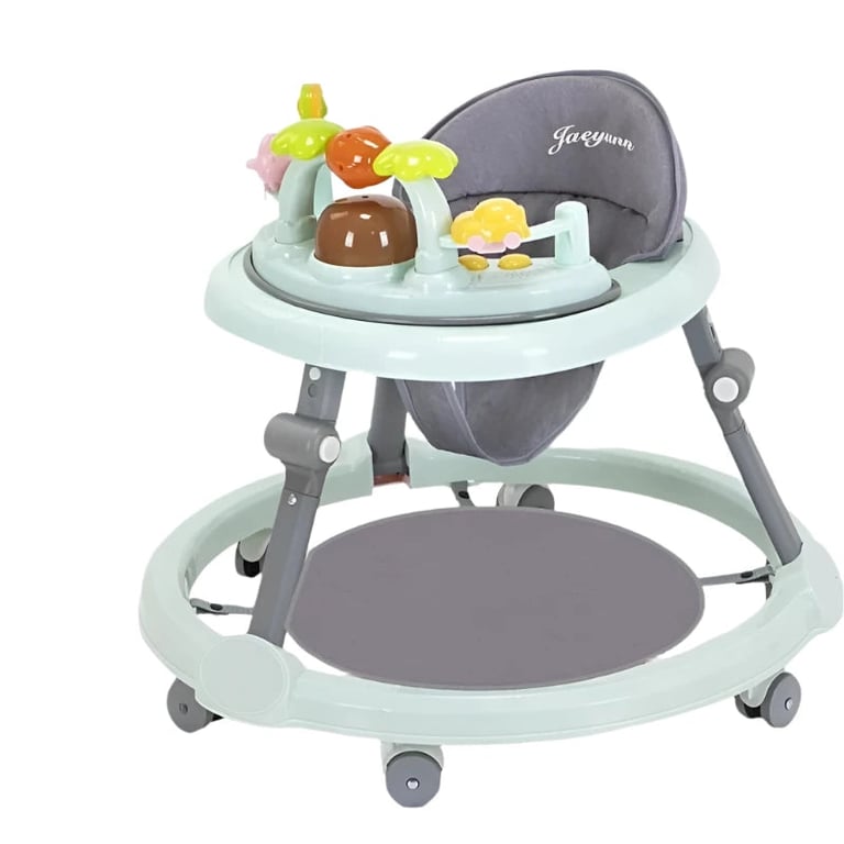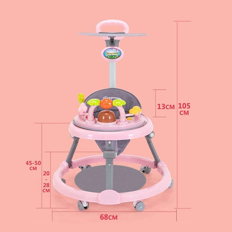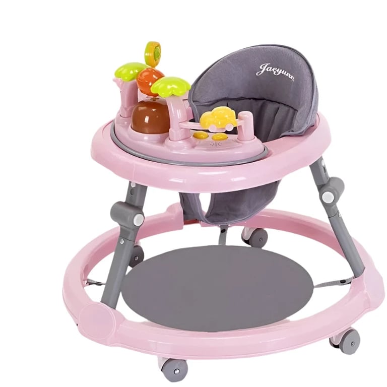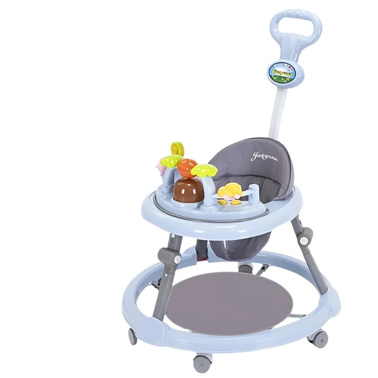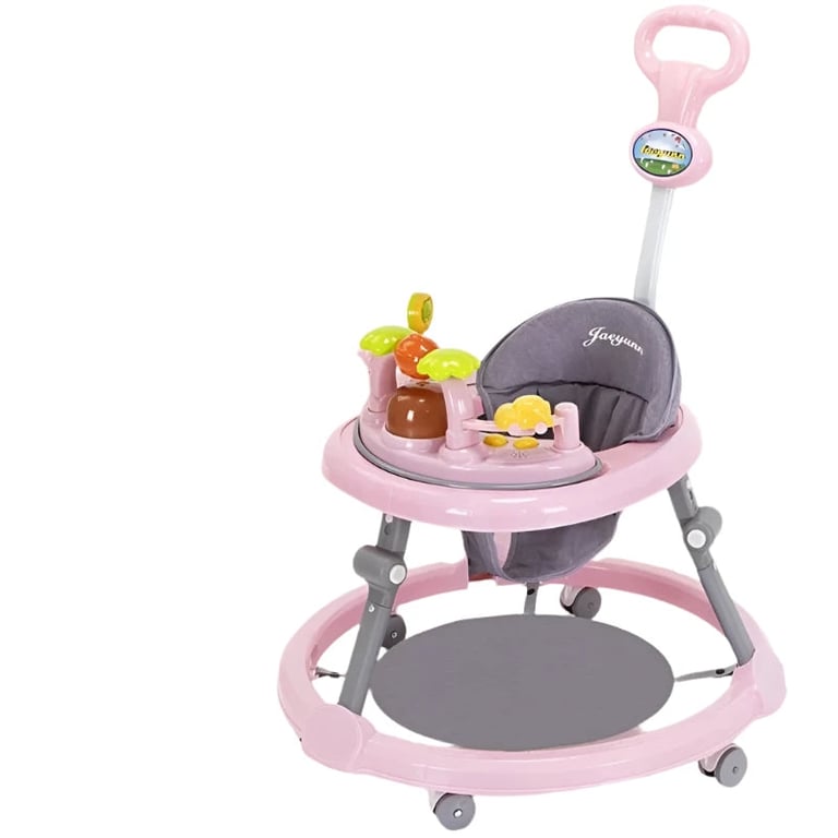This multifunctional baby walker is designed for safe and entertaining first steps for your child. The walker offers six-position height adjustment, so it grows with the child and enables optimal adjustment. Thanks to its folding design, it is easy to transport and store, which you will appreciate at home and on the go. Musical and light features will entertain the child and support its sensory development. A detachable footrest and a play tray with toys increase comfort and versatility of use – the walker can also be used as a dining chair with a tray. A comfortable seat with a high back provides back support and safety while moving.