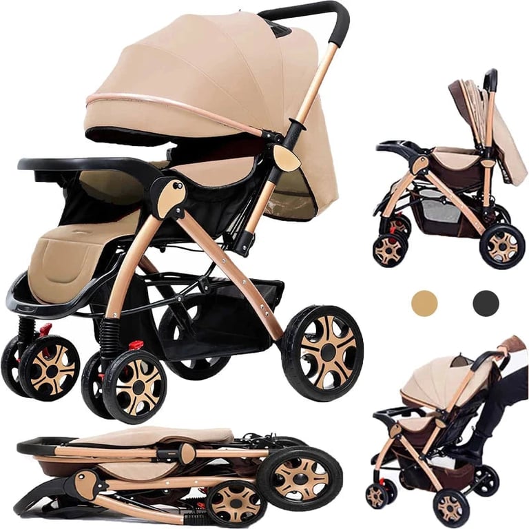 This elegant stroller will attract not only with its luxurious appearance but also with practicality and comfort for both child and parents. Thanks to its tall frame, the child has a better view and is protected from street dust. The stroller is suitable from birth, allows adjustment to lie-flat and seated positions, and offers the option to rotate the seat to face forwards or backwards. The folding mechanism makes transport and storage easier, and large wheels ensure a smooth ride even on uneven surfaces.