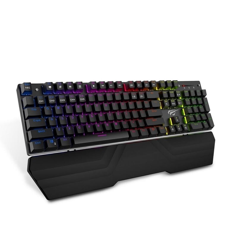 Backlit gaming keyboard with wrist rest