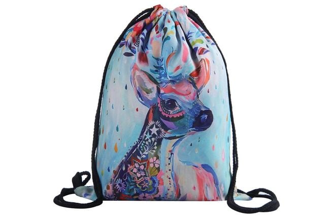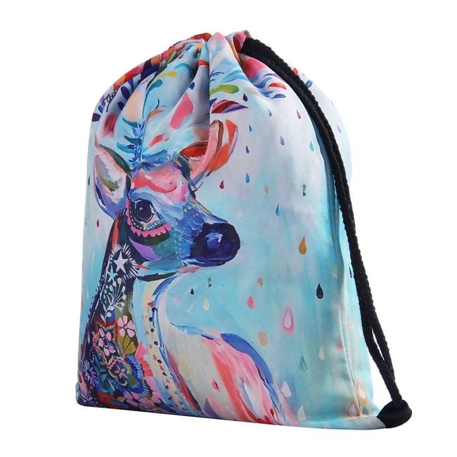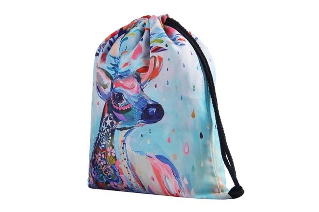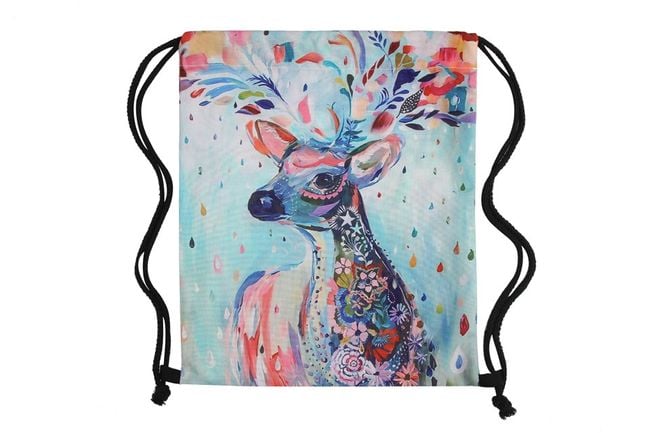 Drawstring bags have become a very popular alternative to traditional backpacks. Get one for yourself – featuring a 3D colourful image of a deer.