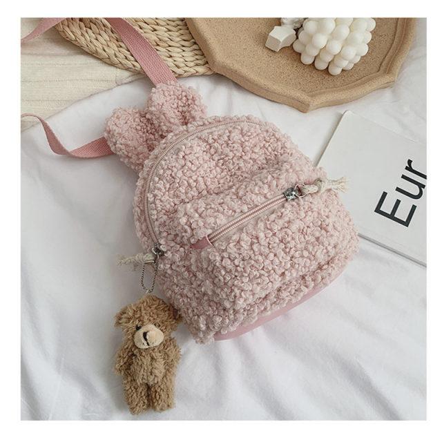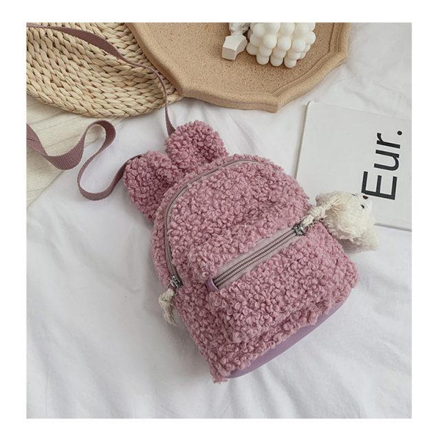 Fleece backpack for girls. The backpack features ears as an accessory and is available in several colours.