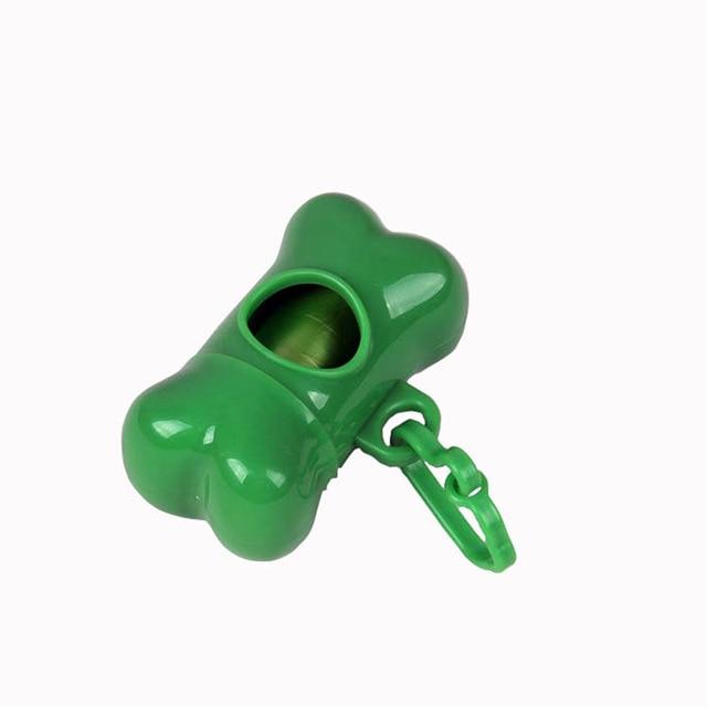 Bone-shaped bag dispenser in various colours.