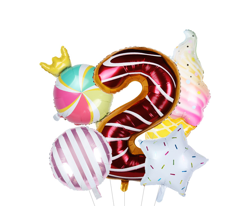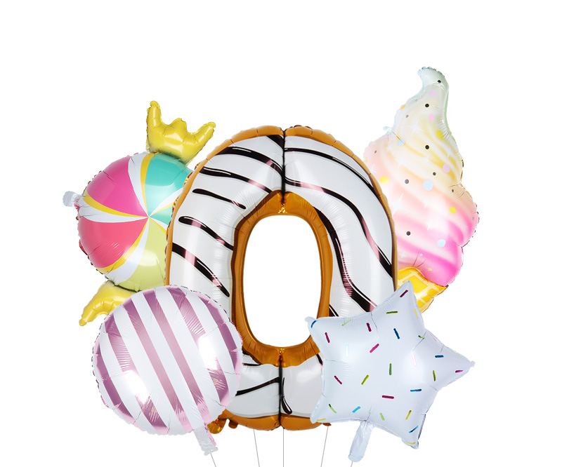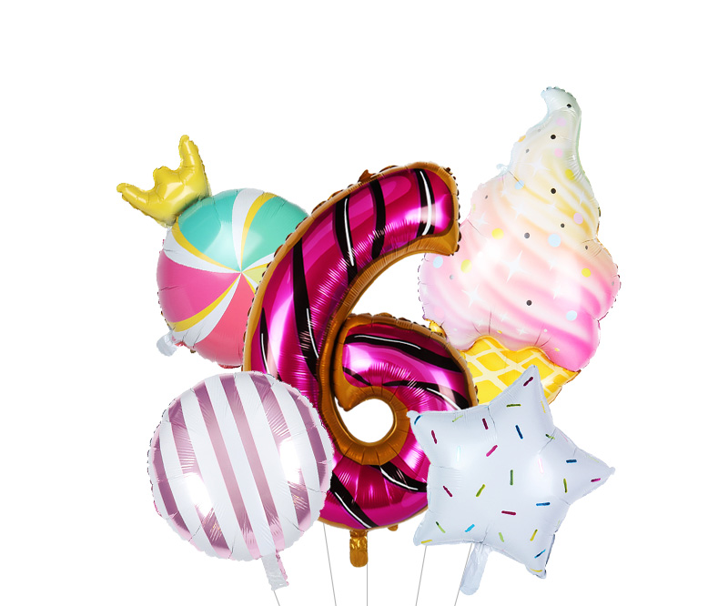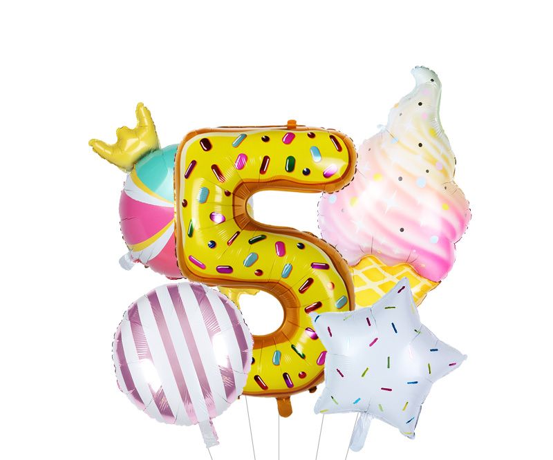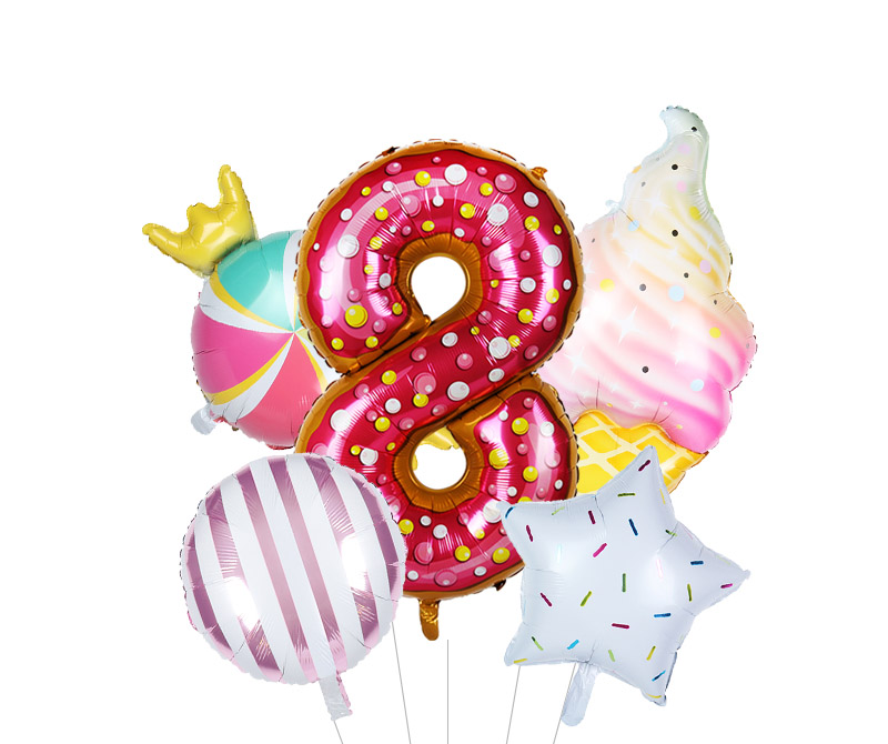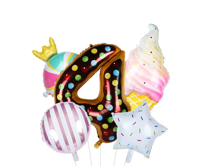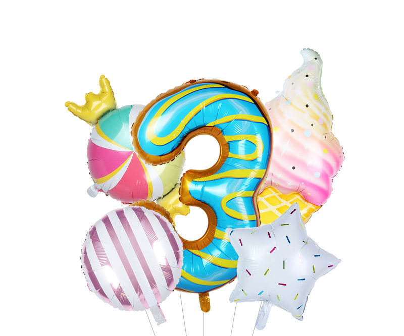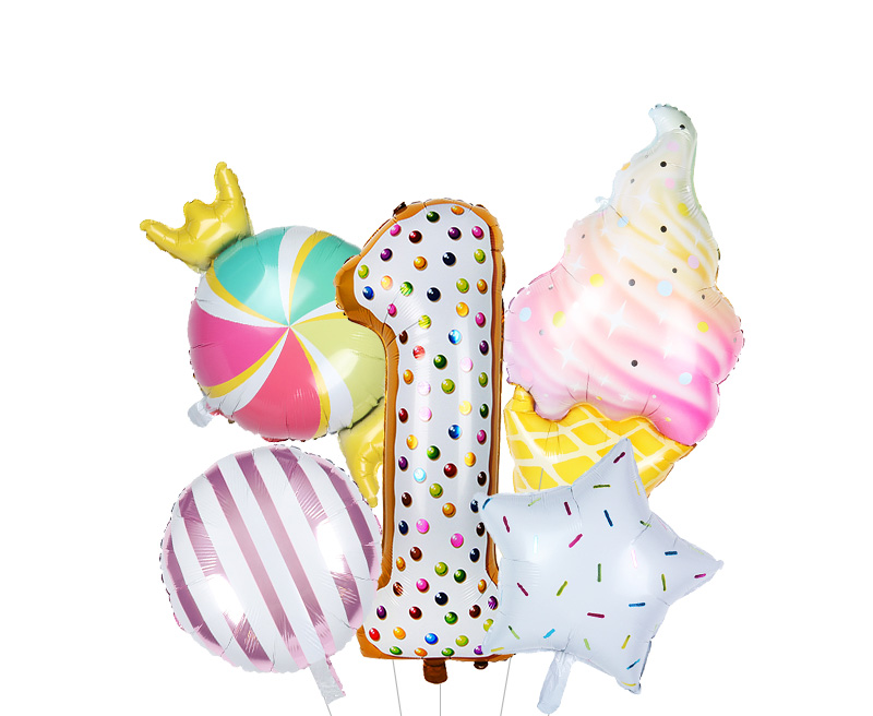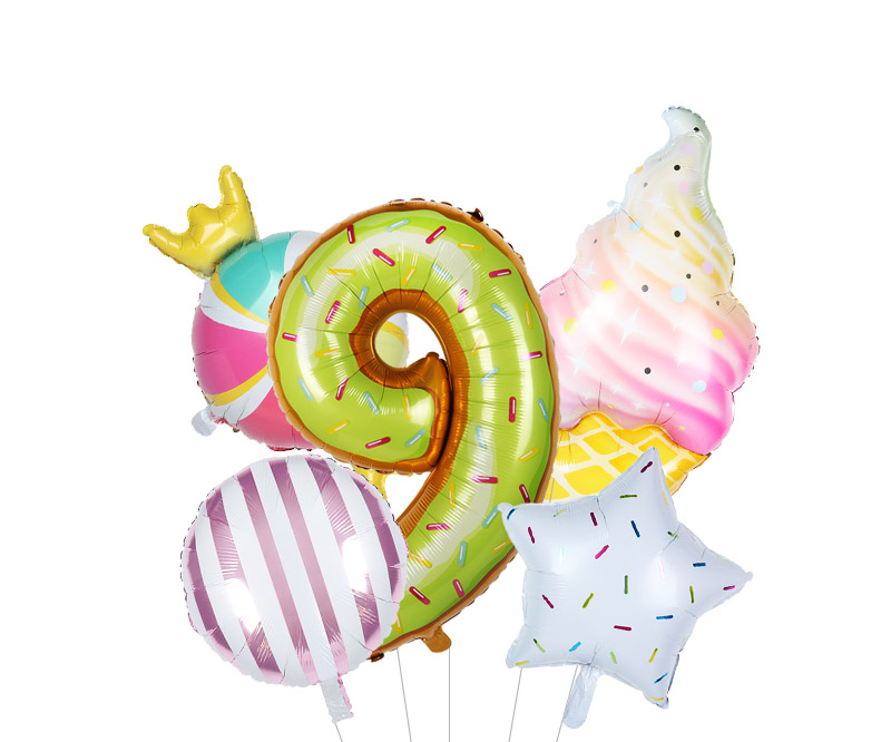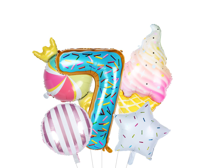 Size: 40 cm – number, 117*53 cm – ice cream, 45 cm other balloons