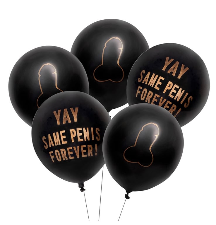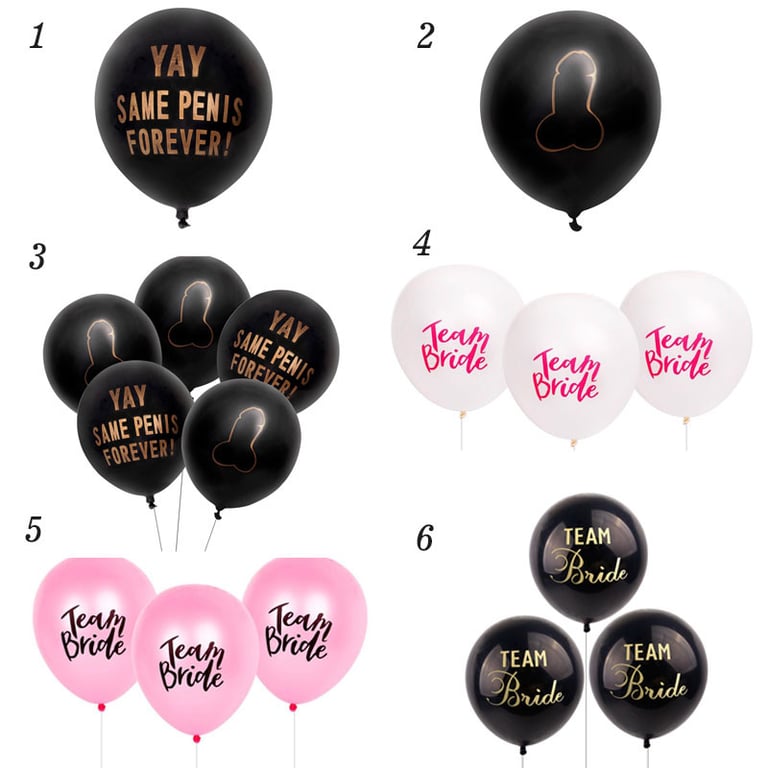 Balloons with funny slogans and images for the bride's hen party.