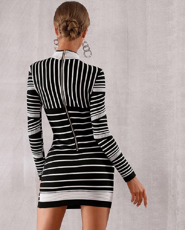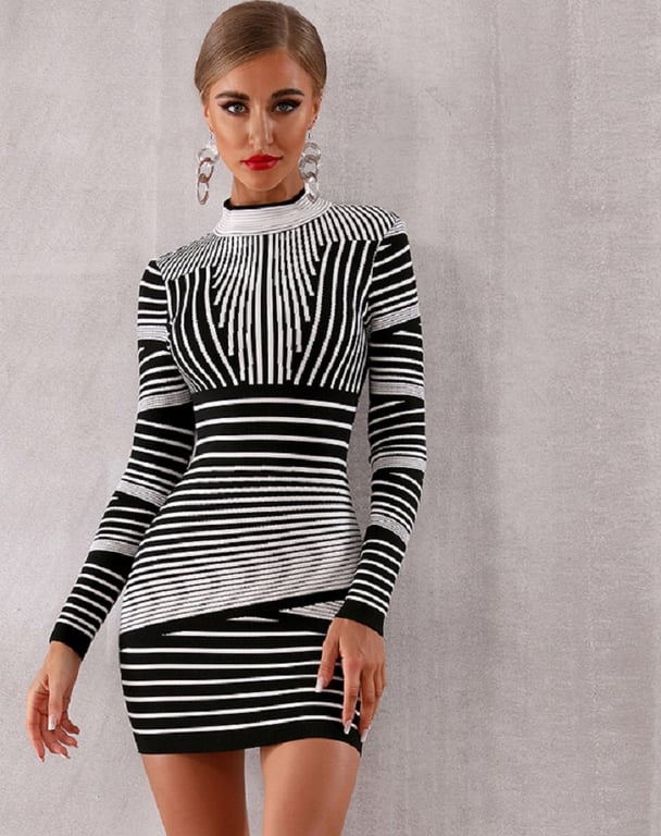 Elegant stretch mini dress in bandage style.