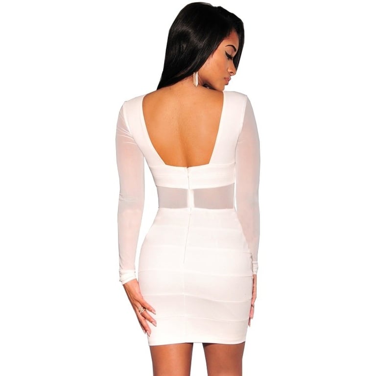 Sexy sheer bandage mini dress with long sleeves.