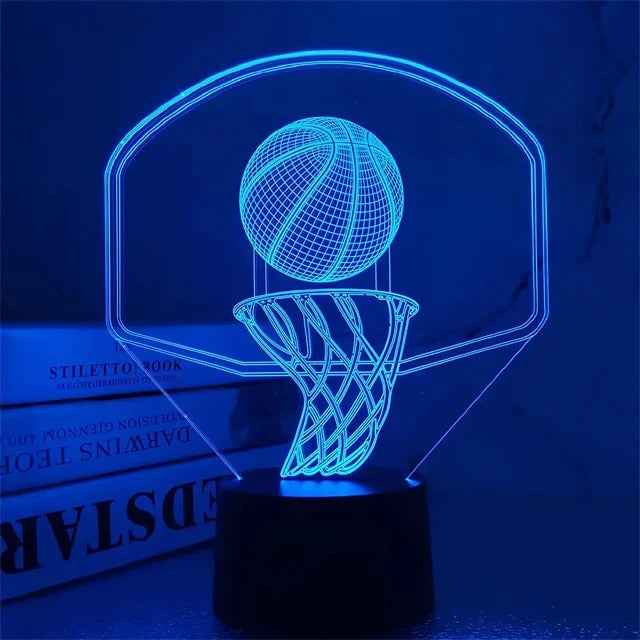 The LED table lamp with a basketball motif is a modern decoration for sports fans, children and teenagers. The engraved acrylic panel creates a 3D lighting effect and, thanks to energy-efficient LEDs, it can illuminate in up to 16 colour modes. The lamp is powered via USB, is easy to operate (touch or remote, depending on variant) and is ideally suited to a children's room, a bedroom or a sports corner.
