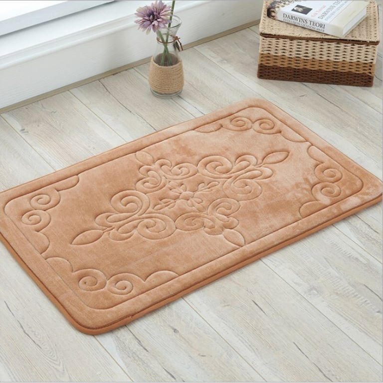Soft bathroom mat with a non-slip layer. Absorbs water. Available in multiple colour options.